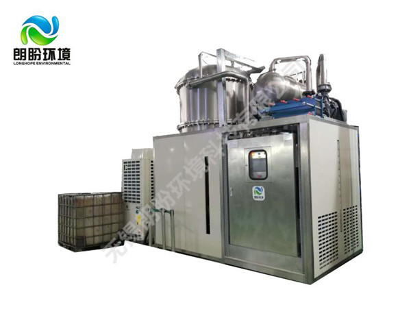 低溫蒸發(fā)結(jié)晶器的原理是物料的沸點(diǎn)隨著壓強(qiáng)的降低而降低。低溫節(jié)能濃縮設(shè)備整體保持真空狀態(tài),蒸發(fā)室的真空度約為95%~97%,在此壓強(qiáng)下水的沸點(diǎn)為35℃~37℃,系統(tǒng)無(wú)需配備進(jìn)料泵,利用蒸發(fā)室的負(fù)壓將物料吸進(jìn)蒸發(fā)室,通過(guò)強(qiáng)制循環(huán)方式將物料循環(huán)霧化,傳輸至換熱器上,物料中水分被蒸發(fā),物料連續(xù)循環(huán)霧化,通過(guò)蒸發(fā)室液位自動(dòng)補(bǔ)料,濃度達(dá)到要求后作為濃縮液排出設(shè)備。濃縮液一般粘度較大,需采用泵抽出。